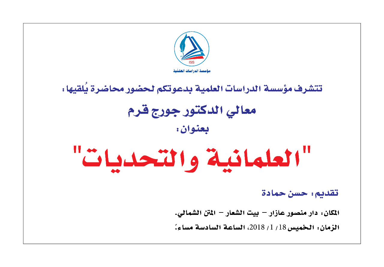 تتشرف مؤسسة الدراسات العلمية بدعوتكم لحضور محاضرة يُلقيها: