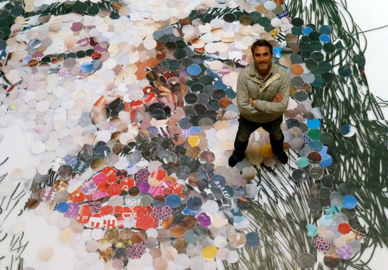 واستفاد سيد فرناي من كل تلك التقنيات ليخلق عالما يؤثثه بنفسه، بأناة، قطعة قطعة، وفي “غاليري جوزيف شارلو” البرايسي، وقف الزوار يتابعونه وهو أمام لوحة ضخمة كان يثبت عليها ما يشبه الأقراص الملونة، المزودة بمغناطيس يشدها إلى السبورة.
