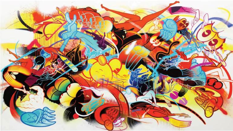 عندما ينتقل فن الغرافيتي من الفضاء العام إلى الغاليري، يصبح غريباً عن نفسه. لكن عندما يكون هذا الفن مولوداً في نيويورك، وينتقل إلى صالة عرض في شارع باريسي، تمسي غربته تلك مضاعفة. هذا ما يخلص إليه الزائر في معرض الفنان الأميركي، رايم، الذي يحمل عنوان "أولاد أنفسنا"، والذي يقدمه غاليري "وال ووركس"، لا سيما حين يتسلل إلى ما يشبه السرداب تحت مبنى باريسي قديم.