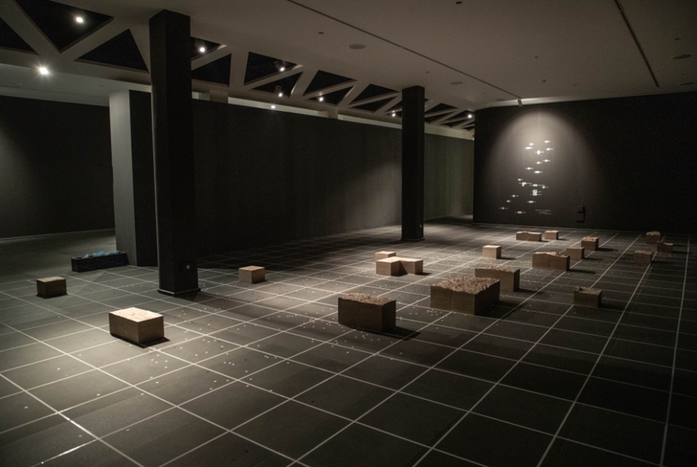 من هنا، جاءت فكرة العمل مع رشماوي الذي لطالما استثمر الخرائط في تجهيزاته الفنيّة كمجال رحب يتردّد فيه على التاريخ والذاكرة والسياسة والتخطيط المديني والثقافة والديموغرافيا، كما في «بيروت كاوتشوك» (2004 ــ 2006)، و«بلازون» (2016)، و«مناظر طبيعيّة» (2012) الذي استعان فيه بخرائط رسمها لاجئون فلسطينيون لمخيّمات الشتات مثل شاتيلا ونهر البارد... لكن كم يملك الفنان مساحة للعمل على خرائط سياسية استعماريّة؟ في إحدى صالتي العرض، حيث يقدم رشماوي عمله، نرى خطوطاً بيضاء طوليّة وعرضيّة تصنع مربعات متساوية على الأرض. إنها الخطوط الصارمة التي ارتكز إليها البريطانيون وفق تقنيّة الـ grid العلميّة التي لا تولي اهتماماً إلا للحسابات الرياضيّة على حساب الإنسان والعلاقات البشرية بين سكان منطقة ما. يخبرنا رشماوي أن هذه الأداة وليدة الثقافة الغربية في عصر النهضة الذي هيّأ للحداثة، حيث «استخدم البريطانيون الحداثة لتقسيم فلسطين». سنرى فوق الخطوط الطولية والعرضية الملصقة على أرضيّة الغاليري، قطعاً ومربّعات صنعها رشماوي من الخشب كتجسيد ثلاثي الأبعاد لأكبر 22 مدينة في فلسطين، منها بير السبع وحيفا والناصرة وطبريا والقدس غزّة وبيت لحم... بين المكعّبات الخشبيّة، توزّعت على الأرض حوالى 1500 نقطة تشير إلى مواقع أظهرها المسح البريطاني. النسبة الأكبر منها، أي النقط البيضاء هي تلك التي لا تزال مسكونة أكان من فلسطينيين أو إسرائيليين، أما النقط السوداء فتمثّل المناطق التي هجّر أهلها ومحيت عن الخريطة. إلى جانب خرائط البريطانيين، استعان رشماوي ببيانات طوبوغرافيّة من وكالة «ناسا». من خلالها منح خريطته بعداً ثالثاً، مضيفاً إليها تحوّلات سنوات الاحتلال والتهجير. يصنع تضاريس هذه المناطق وتلالها وطرقاتها وسككها الحديدية، بتفصيل وبدقّة مدهشين. وإن كان رشماوي يسهب في تضاريس المدن على مكعّباته الخشبيّة، فإنه يترك مساحات شاغرة للمتفرّج. داخل صالة العرض حيث تتوزّع النقاط البيضاء والسوداء، ستبدو هذه المدن الخشبيّة جزراً متباعدة على الأرض الفلسطينية.