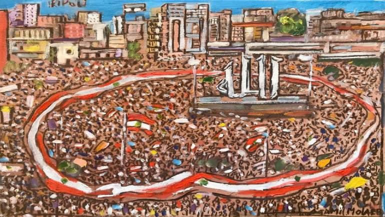نشر الفنان اللبناني التشكيلي جميل ملاعب لوحةً جديدة بعنوان "طرابلس"، ترصد اعتصام المواطنين في ساحة عبد الحميد كرامي منذ أسابيع للمطالبة بحقوقهم في ظل استقالة الحكومة، وهذه اللوحة الثالثة لملاعب التي يخصصها لثورة لبنان، اذ سبق ان نشر لوحتين من دون عنوان وتفاصيل، أرفقها بهاشتاغ #لبنان_ينتفض!"، ليصوّر انتفاضة في المدن والبلدات والساحات.
