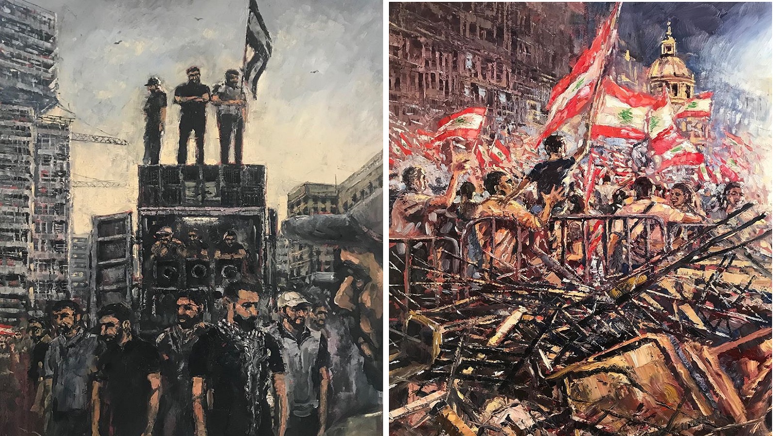 واليوم تتناقل صفحات الفايسبوك صور اللوحات التي رسمها يونغ، تجسّد يوميات الحراك اللبناني الذي بدأ في 17 تشرين الأول (اكتوبر)... لوحات تؤرخ بالألوان لوقائع حصلت وعلقت في الذاكرة التقطتها كاميرات المصورين ونشرت هنا وهناك، سواء الحشود التي نزلت بشكل عفوي إلى ساحتي رياض الصلح والشهداء وهتفت "ثورة" و"كلن يعني كلن"، أو من خلال السلسلة البشرية التي امتدت على طول الساحل اللبناني، اختار يونغ ان يواكب الحراك من خلال لوحاته، عاش يومياته، نزل الى الشارع، علق في زحمة قطع الطرق، رسم رموز الساحات وناسها ومعالمها، رسم العلم اللبناني والقبضات ورمزية مشاركة المرأة، وحتى حرق الاطارات في الشارع وغزو الهمجيين وحرق الخيم في رياض الصلح.