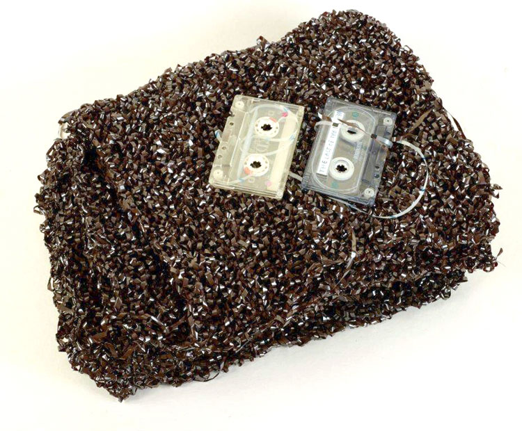 في المعرض سترة تشبه درعا نسجته الفنانة من شرائط الكاسيتات الفارغة وتلك التي أتلفها الزمن، وربما يردنا هذا الدرع إلى محتواه أو إلى مادته الأولية وهي الموسيقى المعزوفة أو المؤلفة ضد عبثية الوجود بشكل عام وعبثية الحرب بشكل خاص.
