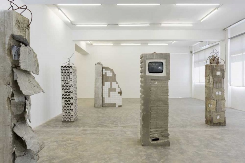 وإضافة إلى هذه الأعمال قدّم أعمالا استقى موضوعها من الانفجار، واستخدم في تكوينها بعضا من المواد “المُفضلة” لديه والتي كان يختارها دائما وفق ملاءمتها لمضمون الأعمال. نذكر منها الإسمنت والشمع وما “أنتجه” الانفجار الهائل من مواد أُخرجتْ من الصالة بعد ترميمها وهي ردم إسمنتي ومعدني من الجدران، وألمنيوم من الشبابيك الذي كوّره عصف الانفجار، فأبقاه مُعلقا على “أجساد” الشبابيك بعد أو قبل أن تهوي أو تتحطّم كليا. وفي تلك الأعمال نجح الفنان في نقل ديناميكية الفعل الوحشي واستطاع أن يعلّق النفس على وقع اللحظة المأساوية.