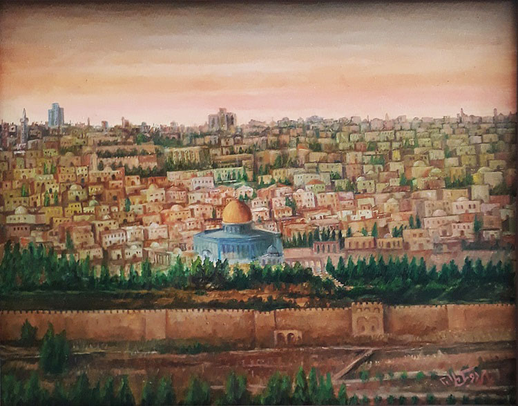 ويتضمن المعرض ما يقارب الأربعين عملا فنيا رُسمت على قماشاتها مدينة القدس المقدسة التي وضع العرب الكنعانيون حجر الأساس لبنائها، والتي غدت مسرى الرسول محمد، حيث كانت قد اكتسبت أهمية خاصة عند المسيحيين كما المسلمين الذين يعتبرون المسجد الأقصى فيها عتبة الجنة يوم الحساب، كما ينظر المسيحيون إليها بالكثير من التقديس والتبجيل والاحترام، فيقدسون هذه المدينة التي مشى السيد المسيح في طرقاتها، وبسبب كنيسة القيامة التي تعدّ من أقدس الأماكن المسيحية في العالم.