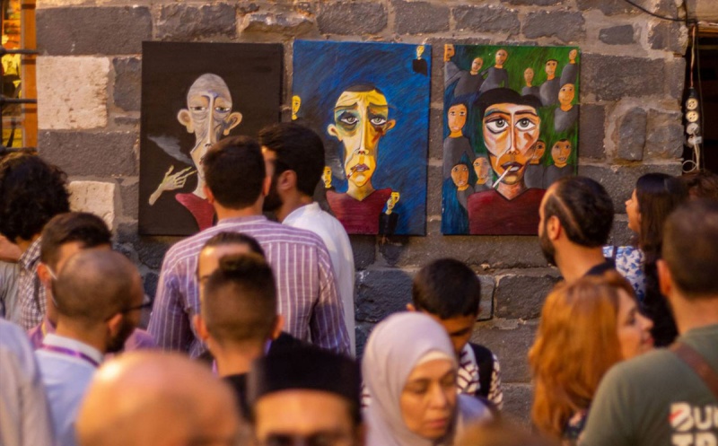 عرضت ديالا، وهي من سكان حمص، أعمالها الفنية في معرض عبور بمشاركة 74 فنانا سوريا آخرين عُرضت أعمالهم التي تعبر عن معاناتهم في سنوات الحرب في المعرض الذي يقيمه ملتقى هارموني الثقافي في قصر الزهراوي بالحميدية في حمص.