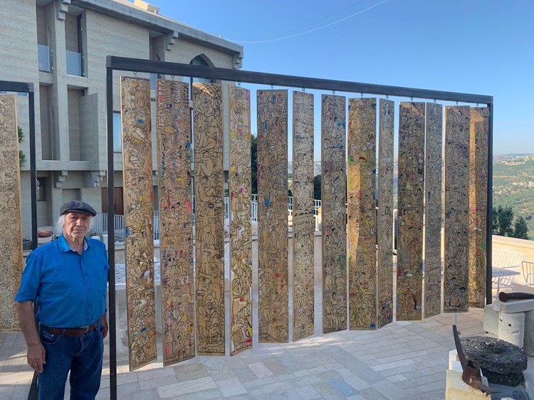 وفي "طقوس لبنانية"، و"لبنان التقاليد والطقوس"، و"لبنان أرض مملكة السموات"، و"لبنان التعايش"، يقفز الفنان فوق المعاني الآنية للتعايش المنضوي في صيغة الكيان السياسي، لينتقل فيها نحو التعايش الانساني بين مختلف المكونات، بمختلف الممارسات، وأنماط الحياة؛ في هذه اللوحات الضخمة ملايين الرموز المتسببة باستمرار عصف المخيلة والمشاعر، لكن بتجليات طقوسية أشبه ما تكون بالرموز الهيروغليفية، يرحل فيها الفنان في خلفيات المشاعر الموغلة في التراث، والتاريخ المتمدد نحو الحاضر بعناصر وراثية لا تتوقف.
