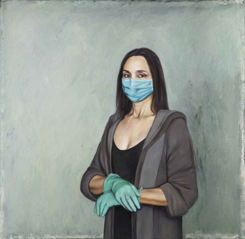 أمّا ريتا عضيمي، فتعبّر عن حضور الجسد بتفاصيله وضياعه وشرايينه الناتئة، كأنّها تتألم من قسوة الواقع، وتقحم في تكويناتها أغراضاً مادية، وتبدو أجسادها متأرجحةً بين الحضور والغياب.