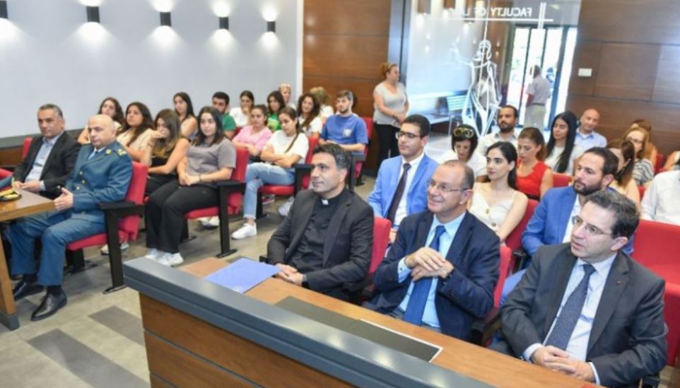 حضر الحفل ممثل قائد الجيش العماد جوزاف عون العميد ميشال الهاشم، عميد كليّة الحقوق والعلوم السياسية الأب الدكتور وسام الخوري، رئيس لجنة جبران الوطنية الكتور فادي رحمه، القاضي البروفسور غابي شاهين، ونجيب خطّار وألكسندر نجار، إضافة إلى عدد من أعضاء مجلس الجامعة والأساتذة والطلاب.