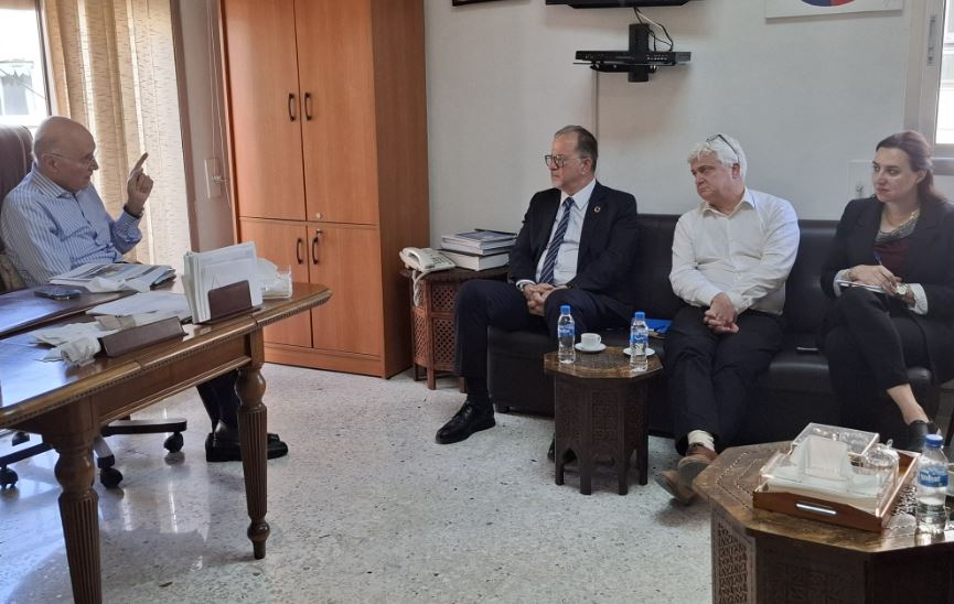 استقبل الدكتور كامل مهنا رئيس مؤسسة عامل الدولية السيد تيد شيبان، نائب المديرة التنفيذية لليونيسف لشؤون العمل الإنساني والإمدادات يرافقه ممثل منظمة اليونيسف في لبنان السيد إدوارد بيغبيدير، وذلك بحضور مدير المؤسسة وعضو الهيئة الإدارية الدكتور أحمد عبود والدكتورة زينة عضو الهيئة الإدارية ومنسقة الاستجابة في المؤسسة ومنسقات البرامج ماريون فابر ولمى عجروش ودانييلا خليل. جاءت الزيارة عقب جولة ميدانية للوفد، تفقد من خلالها العمل الذي تقوم به المؤسسات والجمعيات الشريكة لمنظمة اليونيسيف ضمن مراكز الإيواء، ومن بينها مؤسسة عامل الدولية التي تساند أكثر من 170 مركزاً للإيواء، حيث التقى ممثلة المؤسسة دنيز نمر والفريق العامل على الأرض.