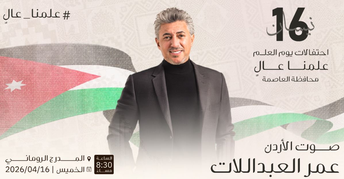 بتنظيم من وزارة الثقافة الأردنية تحتفل المملكة الأردنية الهاشمية بمناسبة يوم العلم الأردني، من خلال حفلة فنية وطنية كبيرة يحييها النجم العربي صوت الأردن الفنان عمر العبداللات بمرافقة فرقته الموسيقية، وذلك مساء يوم الخميس عند الساعة الثامنة والنصف على مسرح المدرج الروماني في العاصمة عمّان .