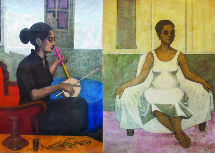 وضم المعرض تنويعات مختلفة متعلقة بثيمتي الوجه والجسد، ففي تلك الأعمال نلمح نساء وفتيات جالسات في هدوء أسطوري، مستكينات لقدرهنّ تحيطهنّ غلالة شفافة من اللون أحيانا، أو يستأنسن في أحيان أخرى بمجموعة من المفردات المحيطة.