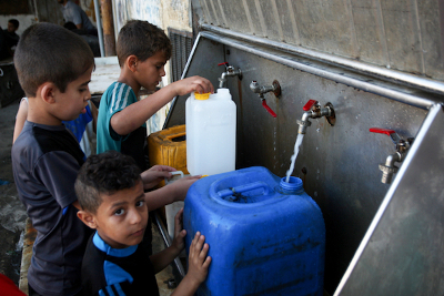 La moitié de la population a accès à l'eau pendant seulement huit heures tous les quatre jours et 30 % des habitants ont de l'eau pendant huit heures tous les trois jours. L'eau des camions-citernes est 15-20 fois plus chère que l'eau du réseau, et elle n'est pas de bonne qualité. Comme pour tous les produits rares, ce sont les pauvres et les personnes en état de faiblesse qui sont les plus touchés. Un nouvel accord sur l'eau entre Israël et l'Autorité palestinienne, annoncé récemment, pourrait soulager un peu la population, mais pour bien, il faudrait que Gaza parvienne à l'autosuffisance grâce à des usines de désalinisation et à une production d'électricité sécurisées.