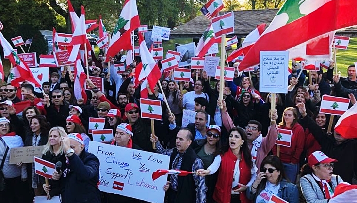 تجمع حشدُ من اللبنانيين المقيمين في مدينتي شيكاغو ولومبارد في ولاية إيلينوي رافعين شعار كلن يعني كلن ورفعوا شعارات تطالب الحكومة بالاستقالة ومحاسبة الفاسدين. وألقت السيدة طونيا خوري، المرشحة السابقة للحزب الجمهوري لانتخابات الكونغرس ونائبة رئيس منظمة الدفاع عن المسيحيين في الشرق الأوسط، كلمة مقتضبة دعت فيها إلى التجاوب مع صرخات المواطنين اللبنانيين الذين يطالبون بأبسط حقوقهم.