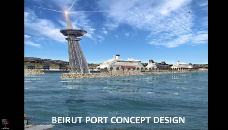 أولاً، سنسول سياحي بطول 2.2 كيلومتر وعرض 60 متراً. ومنطقة سياحية تمتدّ على مساحة 250 ألف متر مربّع. وفي هذه المساحة يتمّ تشييد برج بعلو 160 متراً، تلفّه صور انفجار المرفأ والضحايا الذين سقطوا، وفيه مركز لإدارة المرفأ ومتحف "يحكي عن تاريخ لبنان الفينيقي القديم والجديد والمعاصر"، إضافة إلى مطعم يطلّ على البحر وبيروت. كما سيتم تطوير موقف شار حلو ليتّسع لـ18 ألف سيارة إلى جانب منطقة السوق الحرة.