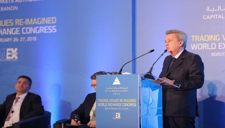 عاد الهدوء ليخيم على أسواق المال اللبنانية، بعد تشكيل الحكومة، فارتفعت أسعار الـEurobonds، وعاد مردود هذه السندات إلى نحو 9.50 في المئة، بعدما كان قد بلغ بين 11 و 12 في المئة، كما تراجعت كلفة التأمين لفترة خمس سنوات إلى 7 في المئة بعدما كانت قد ارتفعت إلى 9 في المئة وأكثر. هذه النتائج أكدها حاكم مصرف لبنان رياض سلامة خلال افتتاحه المؤتمر الدولي السنوي الرابع عشر للبورصات العالمية World Exchange Congress 2019، الذي استضافته بيروت يوم الثلاثاء 26 شباط في فندق فينيسيا، تحت عنوان "رؤية جديدة لأسواق التداول Trading venues Re-imagined.