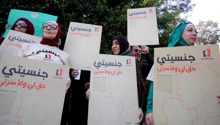 وجاء في التقرير الذي أطلقته "الحملة" أن نحو خمسين دولة في العالم ما زالت تعتمد قوانين تمييزية بين النساء والرجال، وتمنع عن المرأة حق منح الجنسية لزوجها وأطفالها. وأظهر التقرير أن نصف الدول التي ما زالت قوانينها تمييزية موجودة في الشرق الأوسط. واعتبرت مديرة الحملة كاترين هارينغتون أن قوانين الجنسية التي تميّز بين الجنسين تضر بمصلحة الأطفال وتحرم المرأة من المواطنة المتساوية وتعوق التنمية المستدامة، وأن حل هذه المشكلة بسيط ويتمثل في التزام الحكومات بمبدأ المساواة بين الجنسين وسنّ قوانين وإصلاحات تحقق المساواة بين الرجل والمرأة في منح الجنسية.